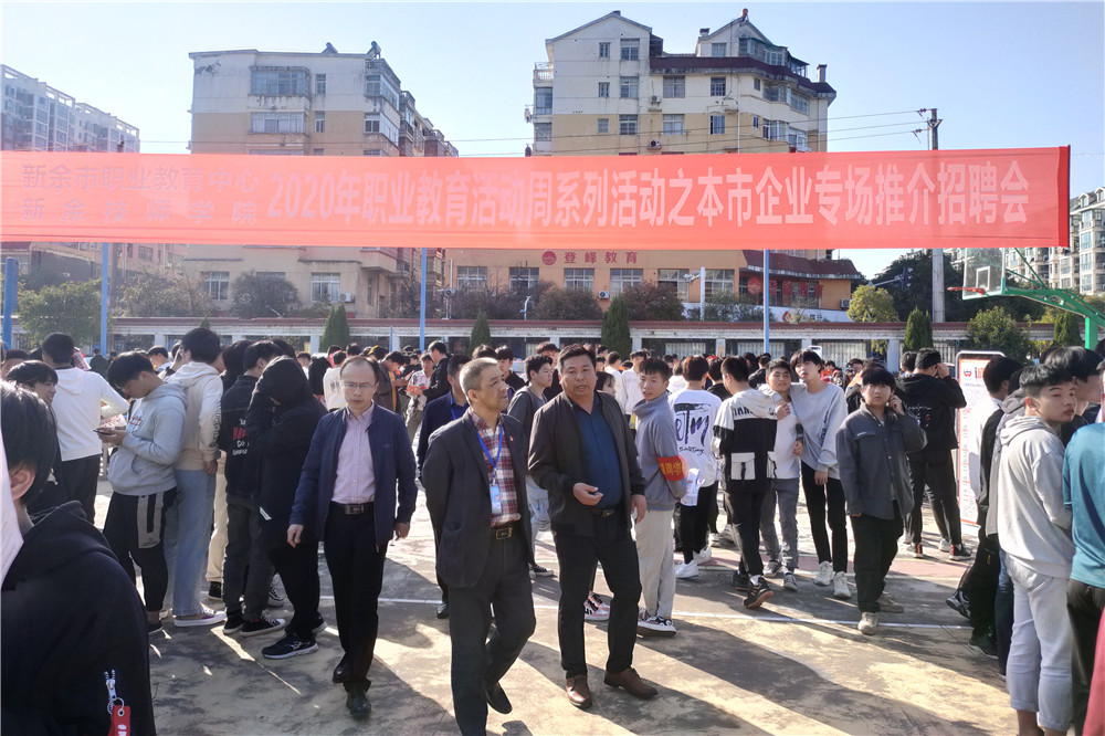 11月12日下午,以“了解本地企业,服务本地经济发展”为主题的专场推介招聘会在新余市职业教育中心篮球场举行。近30家本地企业参加了此次活动,校长胡浩然和工会主席宋兵等相关领导也出席了本场推介招聘会。