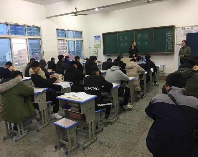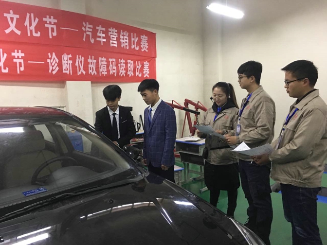 为了增强学生的营销意识和团队意识,展现风采。12月20日上午,第五届校园文化节之汽车营销竞赛如期举行。该比赛分为笔试和实战演练两个环节。上午7:50,由18、19级汽修班组成的15组参赛选手按时到A504参加汽车营销理论考试。8:30笔试结束,参赛选手迅速到汽修厂2区就位进行实战演练。