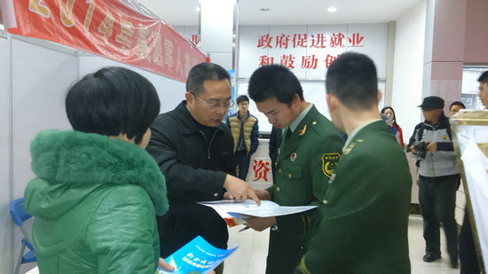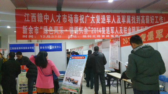 为解决新余籍退役军人的就业问题,新余市民政局联合新余市人保局于12月27日在新余江西赣中人才市场举办了“绿色风采,锦绣兴余”2014年复退军人及驻余随军军属就业专场招聘会。
