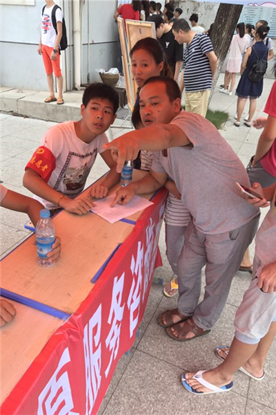 “同学,你要先找班主任办入学手续。”“同学,行李给我,我带你去宿舍。”9月1日,在校园各处都能看到手戴红色袖标的志愿者身影,他们给刚入学的新生指路,帮家长和新生搬行李。虽然汗水打湿了衣服,却没能挡住志愿者们帮助新生的热情,为了让新生尽快融入校园,在帮助他们办理完入学后,他们还传授新生校园学习、生活的小技巧,分享他们学习、生活小经验等。志愿者们的热情,家长频频们对他们竖起了大拇指,纷纷表示感谢学校的安排,感谢志愿者们的帮助,让自己能那么迅速地办理入学手续及让小孩更快地熟悉新校园、新环境。