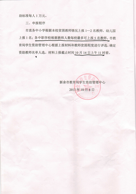 5、各市学生资助管理中心于10月18日前将所有材料(电子版和纸质版)报省学生资助管理中心。