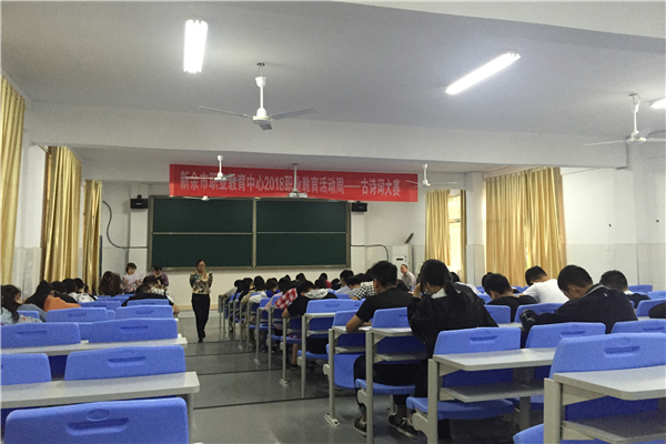 为了丰富同学们的校园文化生活,弘扬中华优秀传统文化,营造书香校园,陶冶学生情操,营造“职业教育活动周”氛围,市职教中心基础教研室于5月10日下午四点半在B201多媒体教室组织开展了全校学生古诗词知识大赛活动。