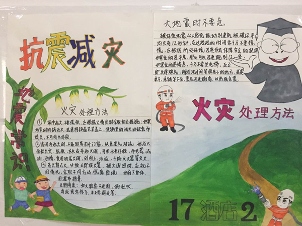 学生处组织了专业老师对各班黑板报、手抄报进行了检查评比,评选出优秀作品。本次活动的开展,让同学们进一步了解了食品安全和防震减灾知识,既培养了同学们的动手能力和团队合作意识,又推进了校园文化建设,收到了良好的效果。