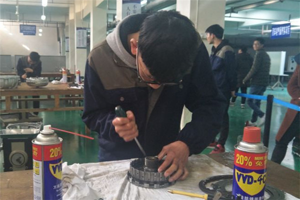 学校为了提高汽修专业学生的实践操作的技能,调动学生对汽修专业的兴趣,通过前面预赛选出了20名同学参加此次技能文化节比赛,11月29日,新余技师学院在汽修实训厂举行了变速箱拆装和现场答题的决赛,经过三位评委公平公正的打分,决出了本次比赛的前六名。