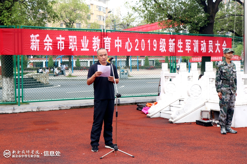 9月3日上午,新余市职业教育中心(新余技师学院)2019级新生军训动员大会在运动场隆重举行,新钢武装部军事科科长彭正东及副校长李峰同志参加了大会,大会由学生处主任刘国文主持。