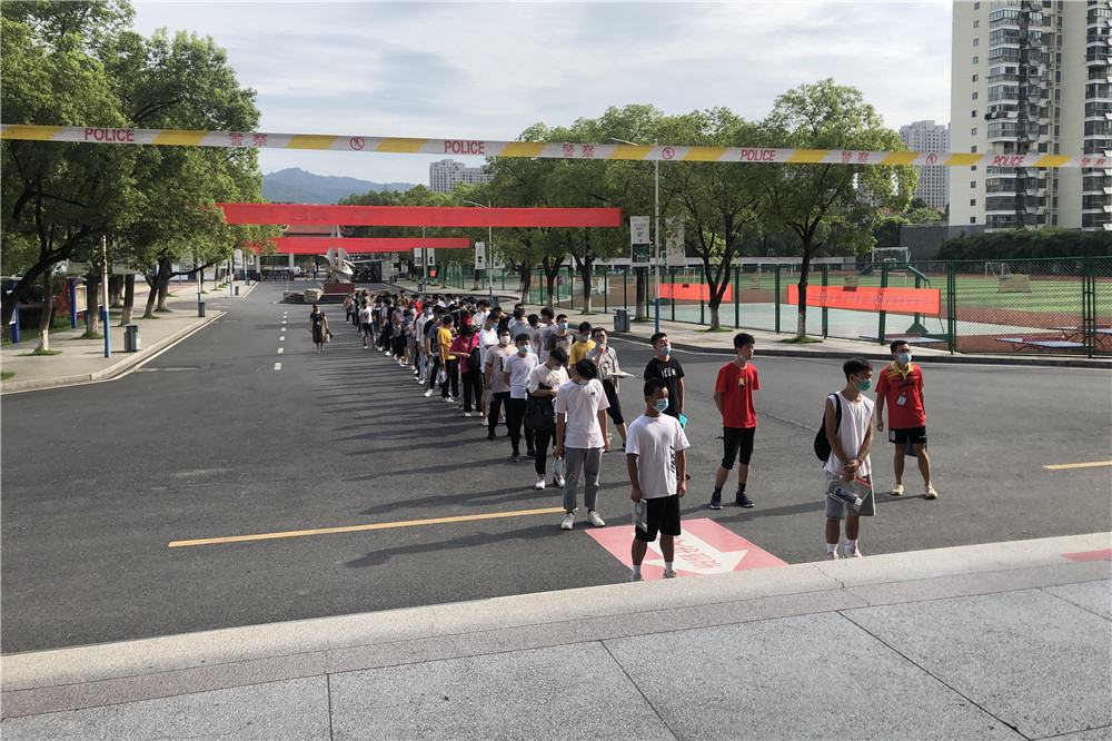 每位参与高考的相关人员(考生、监考老师、工作人员和服务人员)考前14天都要测量、记录好体温并签定考试安全承诺书,高考前一周(7月1日),每位高考相关人员还必须做好核酸检测并符合高考要求,考生需佩戴好合格的口罩经校门口的红外线探测仪检测,体温正常方可进入考点参加考试。另外学校每天指派专人定时做好校内各场所特别是高考考场的消杀消毒工作,安排了两名校医,配足配齐了防疫物资,为每位考生安全高考保驾护航。