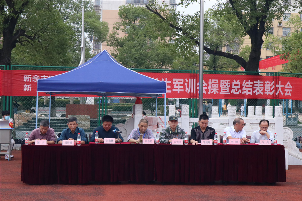 接着,副校长李峰公布优秀学员、优秀教官、优秀连队名单。校领导为优秀个人和连队颁奖。最后,校长胡浩然宣布2020年新余市职业教育中心军训会操比赛圆满落幕。