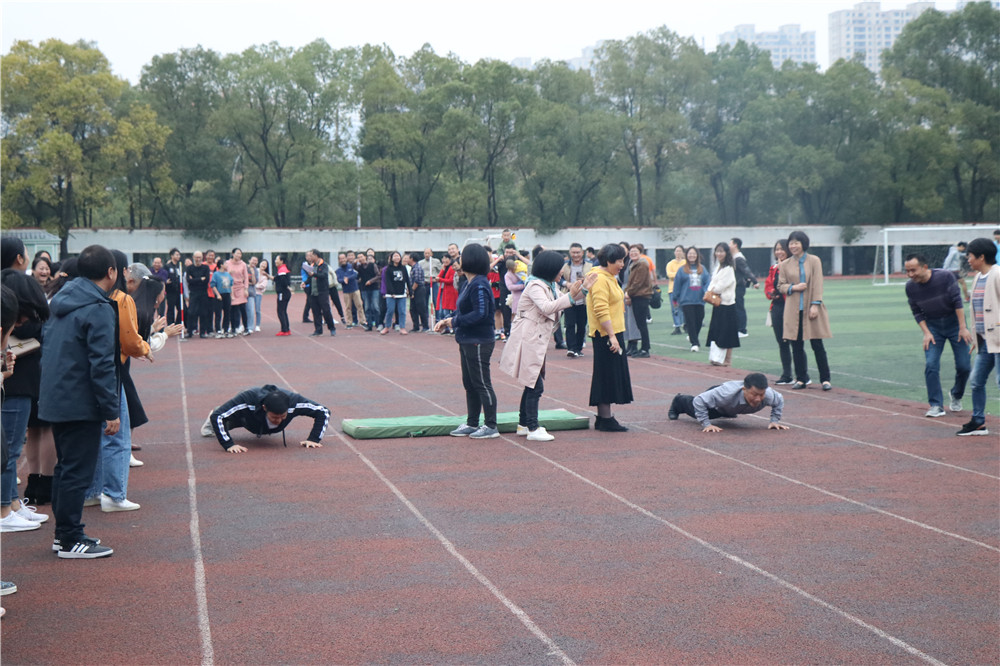 本次趣味活动设有冲关接力、抱团两个项目,“冲关接力”集短跑、俯卧撑(仰卧起坐)、跳绳于一身,对选手的综合素质是一大考验。“抱团”则是要求个人反应速度要快,同时又有运气的成分。各工会小组精心组织,积极备战,共有100多位教职工参加了本次比赛。经过一个多小时的激烈角逐,第四工会小组抢得“冲关接力”冠军,“抱团”第一名则被第一工会小组斩获。