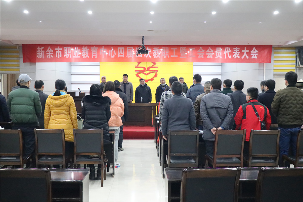 会议在庄严的国歌中拉开了序幕,市职教中心教职工代表、特邀代表共计55人出席了会议。