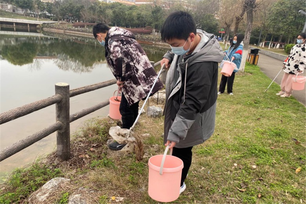 3月4日,校团委组织春晖社的志愿者们来到长林公园进行了“河小青”实践活动,志愿者们热情高涨,积极拾捡沿河垃圾。他们手拿垃圾桶、钳子,熟练地将废弃塑料袋、易拉罐、橘子皮等垃圾嵌入桶中,为建设美丽公园贡献自己一份宝贵力量。