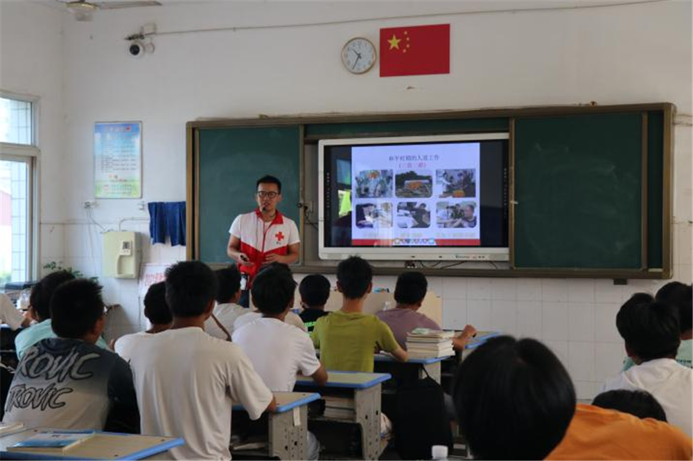 培训会上,新余市红十字会李琴老师以提问的形式,结合身边实际,用通俗易懂的语言向师生讲解了防溺水、心肺复苏等知识。还邀请学生上台进行实际操作,在模拟人身上做心肺复苏,进一步巩固了所学知识,掌握了现场急救的基本知识。