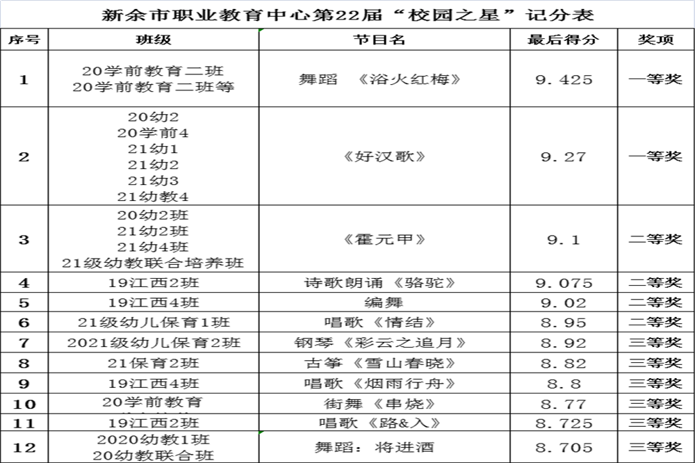 新余市职教中心(新余技师学院)团委举行第22届“校园之星”才艺大赛决赛