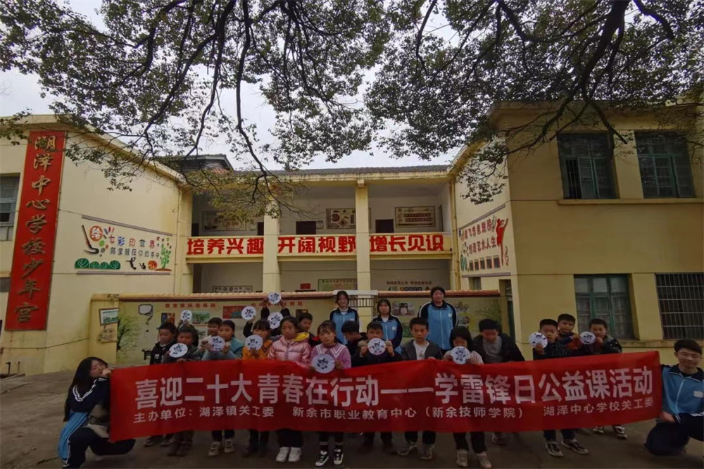 针对分宜县湖泽中心学校艺术类教师师资配备不足,农村留守儿童美育素质不高的问题,市职业教育中心团委与湖泽镇中心学校共建“党建+青团有为”社会实践基地。基地旨在发挥市职教中心幼儿教育、工艺美术专业青年教师、团员青年的专业优势,为学生提供奉献社会、展示技能的平台。每月第二周周五下午,由学生会担任主干的“青团有为帮教团”成员到湖泽中心学校给学生上音乐课、美术课、手工课等公益课程。寓教于乐的美育课程受到湖泽中心学校师生一致好评。