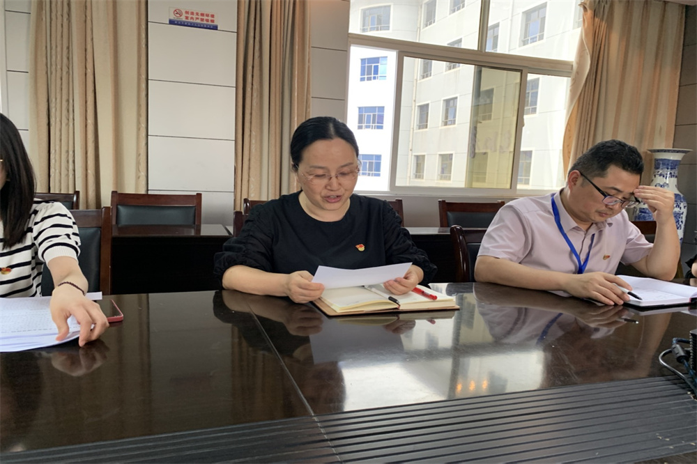 6月10日下午,市职教中心第一党支部在图书馆三楼会议室召开六月主题党日活动,会议由支部书记闵文群主持。