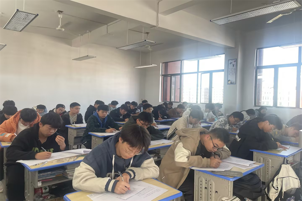 窗外有风景,笔下有前途;低头是题海,抬头是未来。现在有多努力,以后就有多幸运!各考场内,同学们奋笔疾书,安静作答,认真检查,遵守考场秩序,诚信应考。