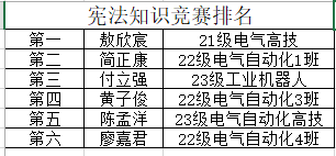 本次宪法知识竞赛结果如下: