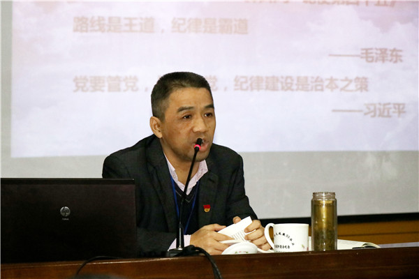 11月15日下午,校党委书记胡浩然为全体党员上题为《坚决把纪律挺在前面》的专题党课。