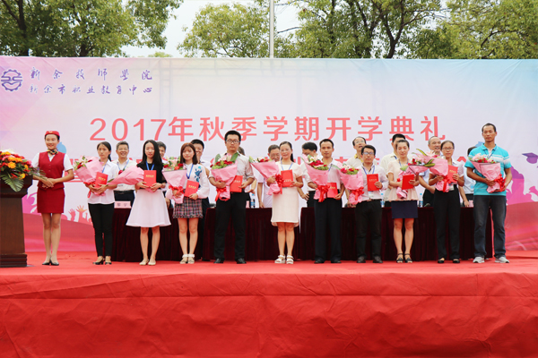 金秋九月,硕果飘香,梦想起航。9月8日下午,新余市职业教育中心(新余技师学院)2017年秋季开学典礼暨庆祝第33个教师节表彰大会在校运动场隆重举行。市教育局党委委员、副局长何卫兵,市职成科科长易健儿及校党政班子出席了大会,大会由校党委书记胡浩然主持。