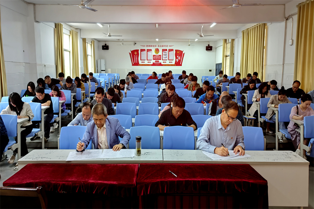 为持续深化学习贯彻党的二十大精神,进一步引导广大党员干部学深、学懂、学透党的二十大精神,自觉用党的创新理论统一思想、指导实践,真正把学习成果转化为前进动力。4月13日下午,市职教中心在教学楼B201举行“学习党的二十大 踔厉奋进新征程”知识竞赛活动,校党委班子成员以普通党员身份和全体党员共同参加竞赛,竞赛由校党委副书记黎宇督考。